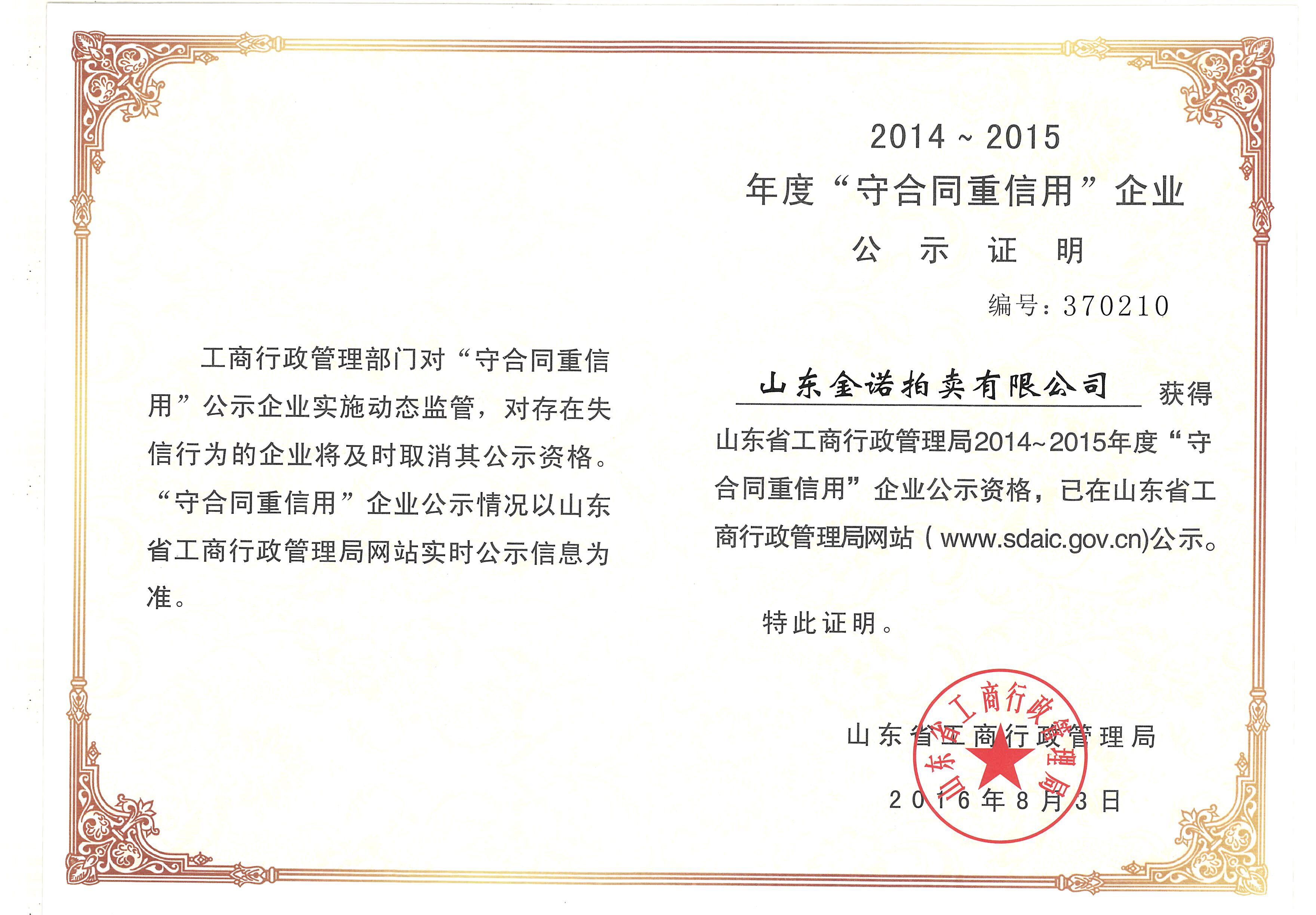 2014-2015年度“守合同重信用”企