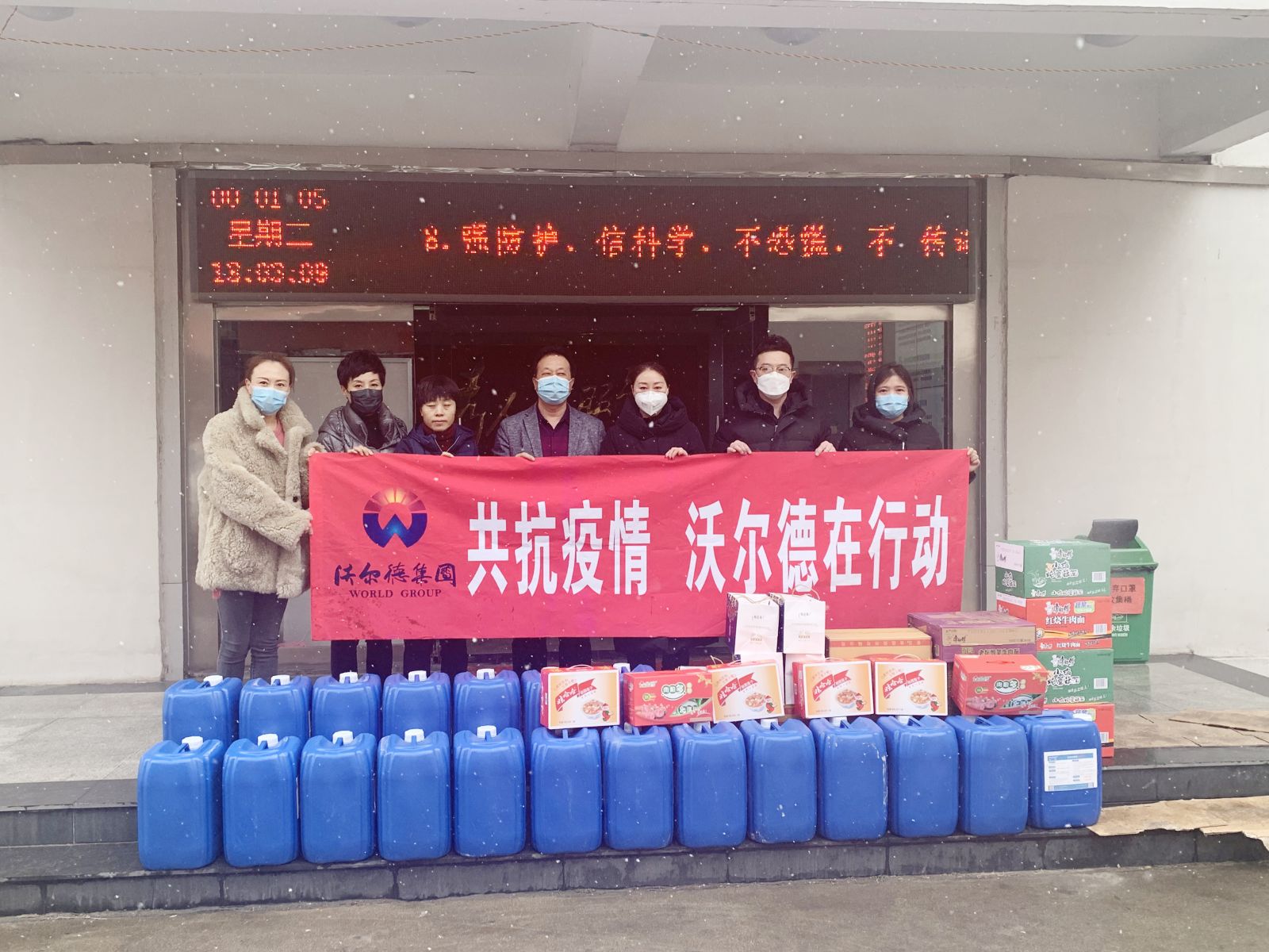 安徽沃爾德拍賣向蜀山區西園街道七里塘社區、蜀山區公安局、阜陽市臨泉縣鲖城鎮政府等奮戰在一線的部門送去急需的84消毒液、口罩及食品等物資。公司總經理主動請纓奮戰一線,成為社區志愿者,進行防疫檢查。