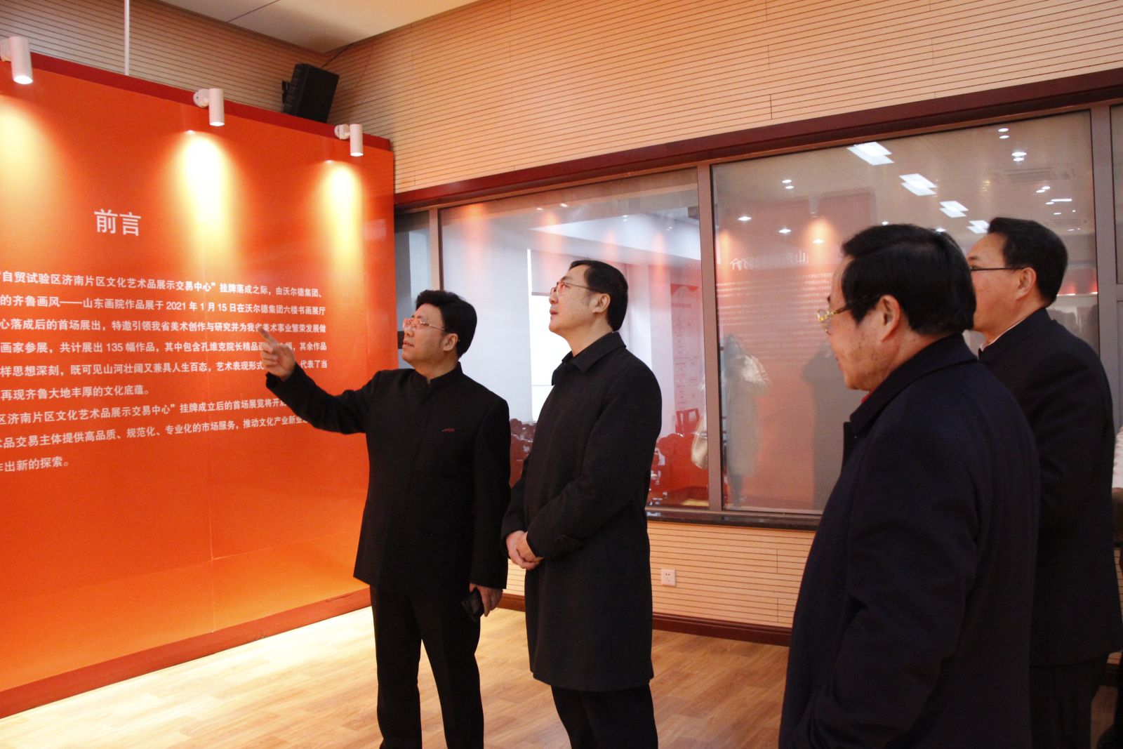 掛牌活動(dòng)后,領(lǐng)導(dǎo)和嘉賓一行現(xiàn)場(chǎng)觀摩了展示交易中心,并認(rèn)真聽(tīng)取中心負(fù)責(zé)人關(guān)于中心的前期工作進(jìn)展和各功能分區(qū)設(shè)置的情況介紹,重點(diǎn)了參觀“齊魯畫(huà)風(fēng)——山東畫(huà)院作品展”。