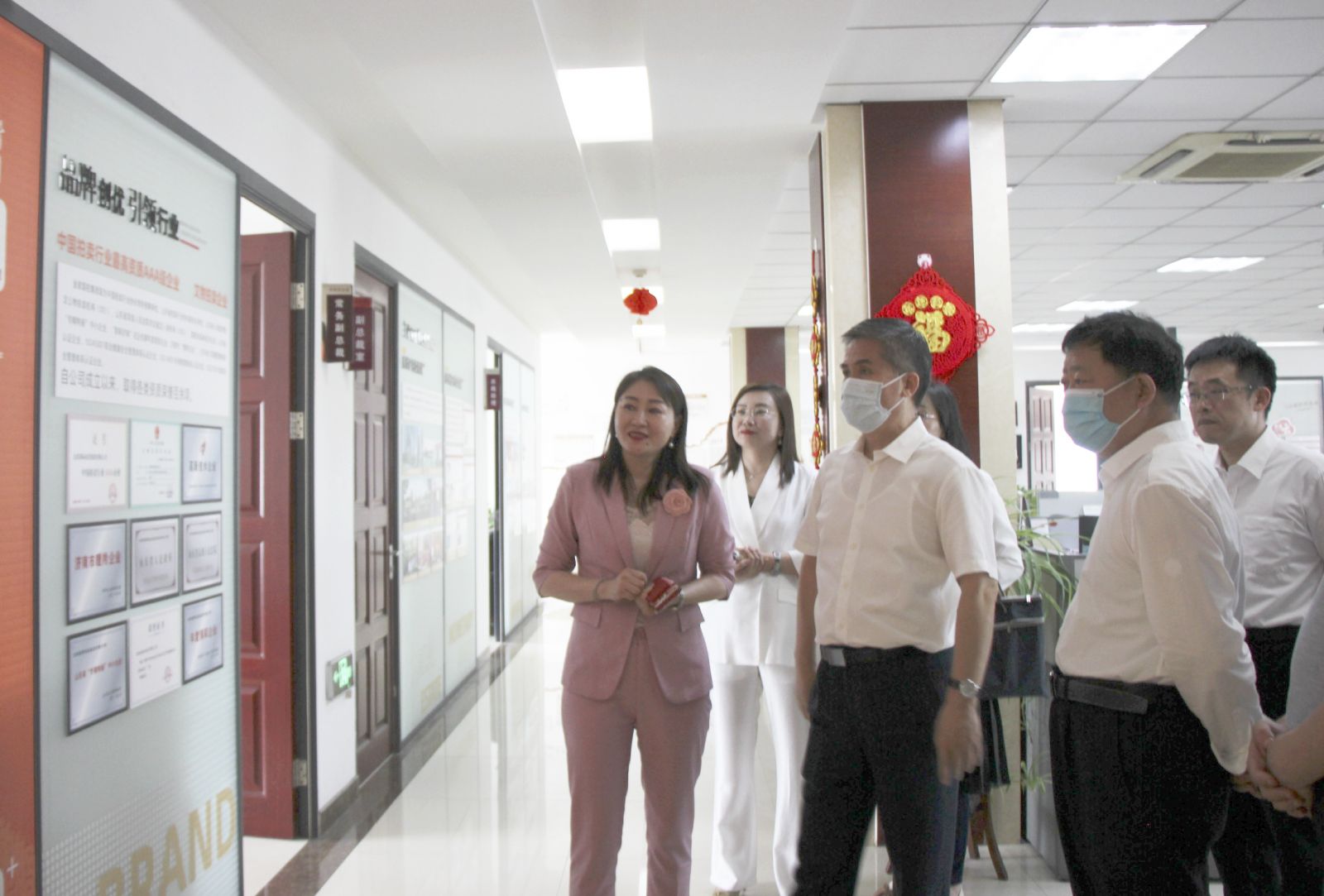 6月9日下午,省市場監管局一級巡視員朱昆峰一行蒞臨金諾國拍集團調研考察。市市場監管局黨組書記朱云生、歷城區政府副區長高博、歷城區局黨組書記、局長陳學柱等陪同調研。沃爾德集團總裁、金諾國拍集團董事長商雪梅、金諾國拍集團總裁位琳陪同接待并參加座談。