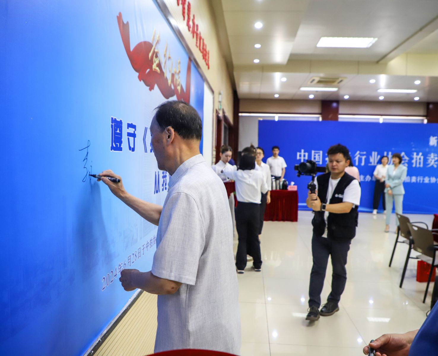 參會拍賣師現(xiàn)場進(jìn)行簽約。這是對拍賣行業(yè)的敬畏,也是一名拍賣師的莊嚴(yán)承諾。拍賣師們紛紛表示將積極響應(yīng)號召,嚴(yán)格遵守《拍賣師自律公約》,履行拍賣師的職責(zé),為拍賣行業(yè)的健康發(fā)展貢獻(xiàn)力量。