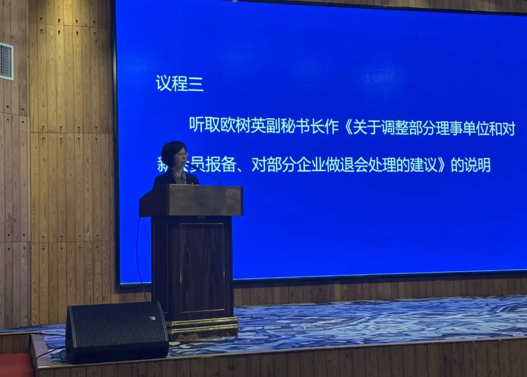 會上還審議通過了歐樹英副秘書長所作的《關于調整部分理事單位和對新會員報備、對部分企業做退會處理的建議》《關于提請免去蔣迎春副會長職務的建議》《關于向上海市商務委員會致感謝信的建議》。
