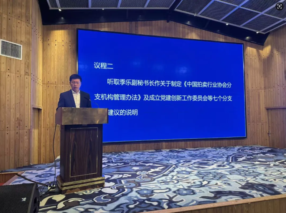 會上審議通過了季樂副秘書長所作的《關于制定<中國拍賣行業協會分支機構管理辦法>的建議》及關于成立黨建創新工作委員會、國資國企拍賣專業委員會、資源循環利用與閑廢物資拍賣專業委員會、農產品拍賣專業委員會、公益慈善拍賣專業委員會、數字技術與平臺經濟拍賣專業委員會、標準化技術委員會的建議。