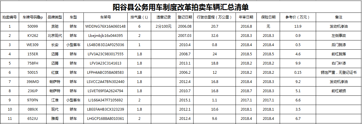 受委托,我公司定于2017年8月24日上午10時在陽谷縣創(chuàng)業(yè)孵化基地東樓3樓會議室(原老唐駕校)舉辦公務用車拍賣會,具體情況公告如下: